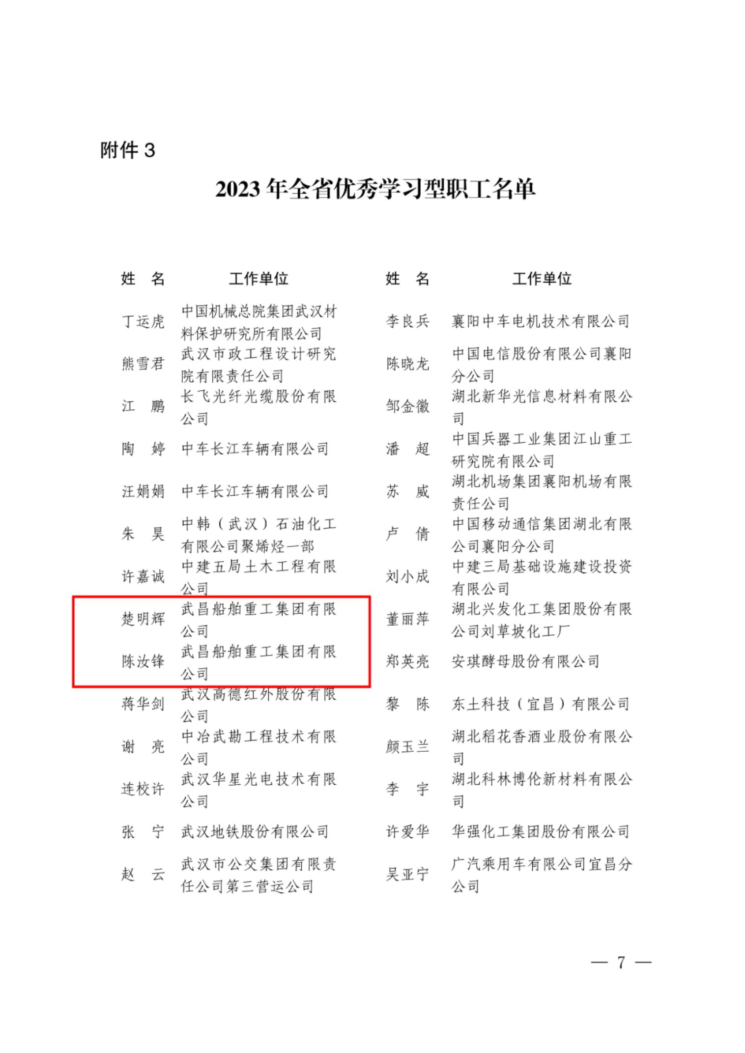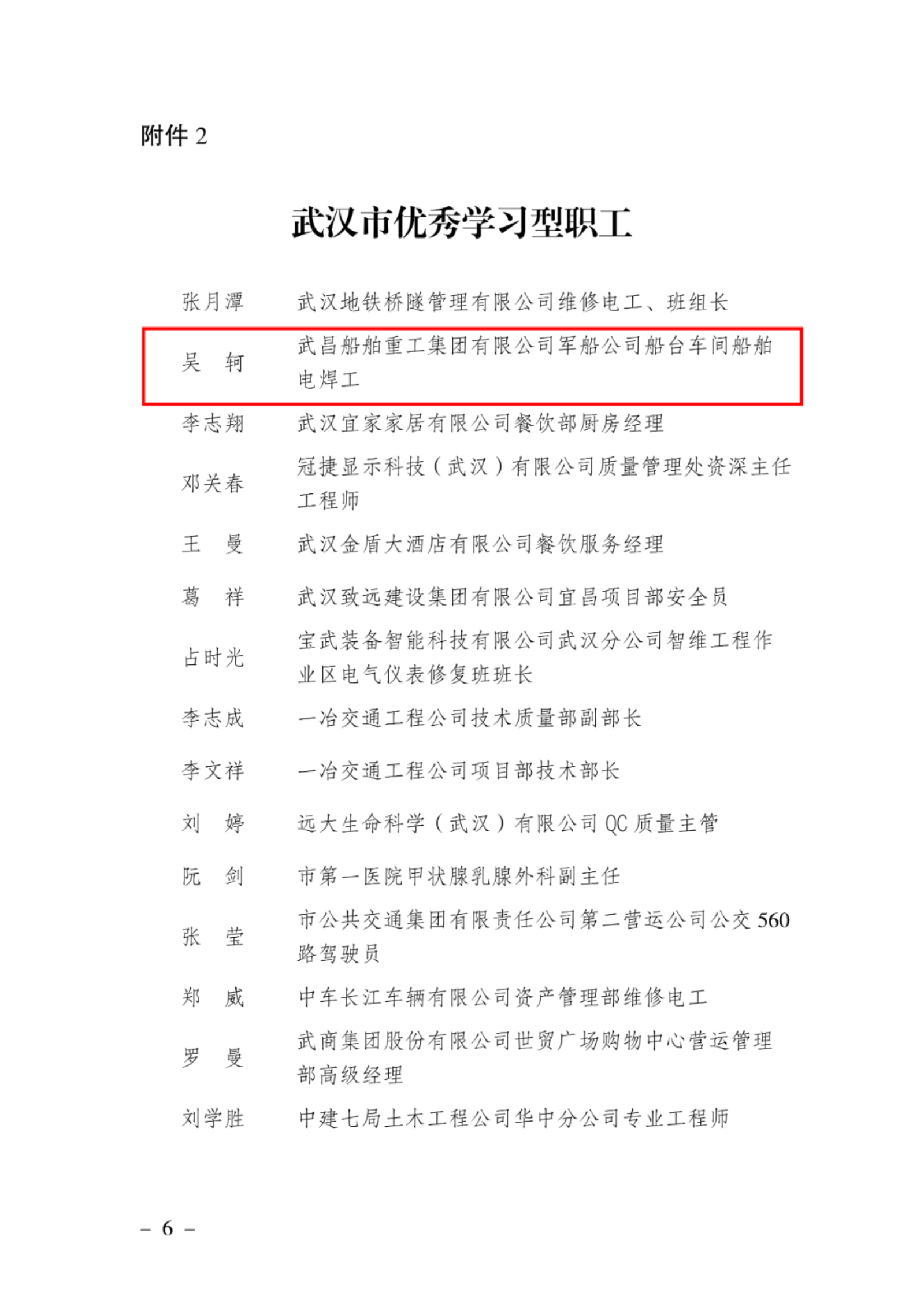 近日,湖北省總工會和武漢市總工會紛紛傳來喜訊,中國船舶集團武昌造船五名職工分別獲評省市級“優(yōu)秀帶徒名師”“學習型職工”。