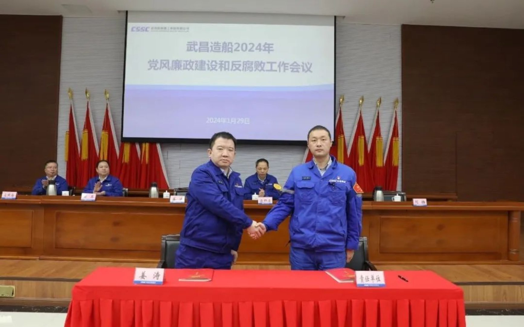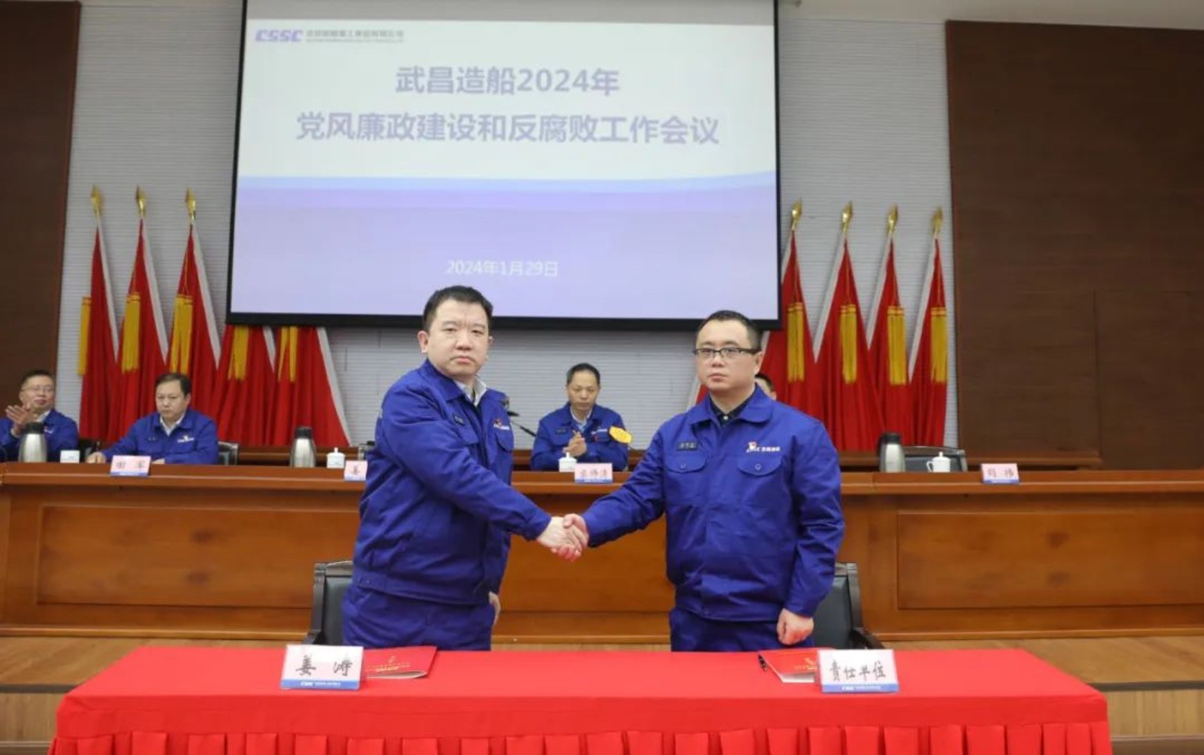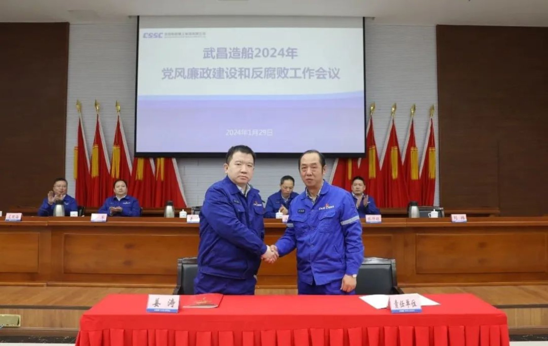 1月29日,中國船舶集團武昌造船召開2024年黨風(fēng)廉政建設(shè)和反腐敗工作會議。武昌造船黨委書記、董事長姜濤出席會議并講話。黨委副書記、總經(jīng)理梁師清主持會議,并傳達了二十屆中央紀委三次全會精神和集團公司2024年黨風(fēng)廉政建設(shè)和反腐敗工作會議暨警示教育大會精神。黨委委員、紀委書記左照海作了題為《忠誠履職 擔(dān)當(dāng)作為 以紀檢工作新質(zhì)效助推價值創(chuàng)造 為公司改革深化提升 高質(zhì)量發(fā)展提供堅強保障》的工作報告。公司領(lǐng)導(dǎo)田軍、陳仲明、劉祎,公司助理級領(lǐng)導(dǎo)、公司紀委委員,中層副職及以上管理人員參加會議。