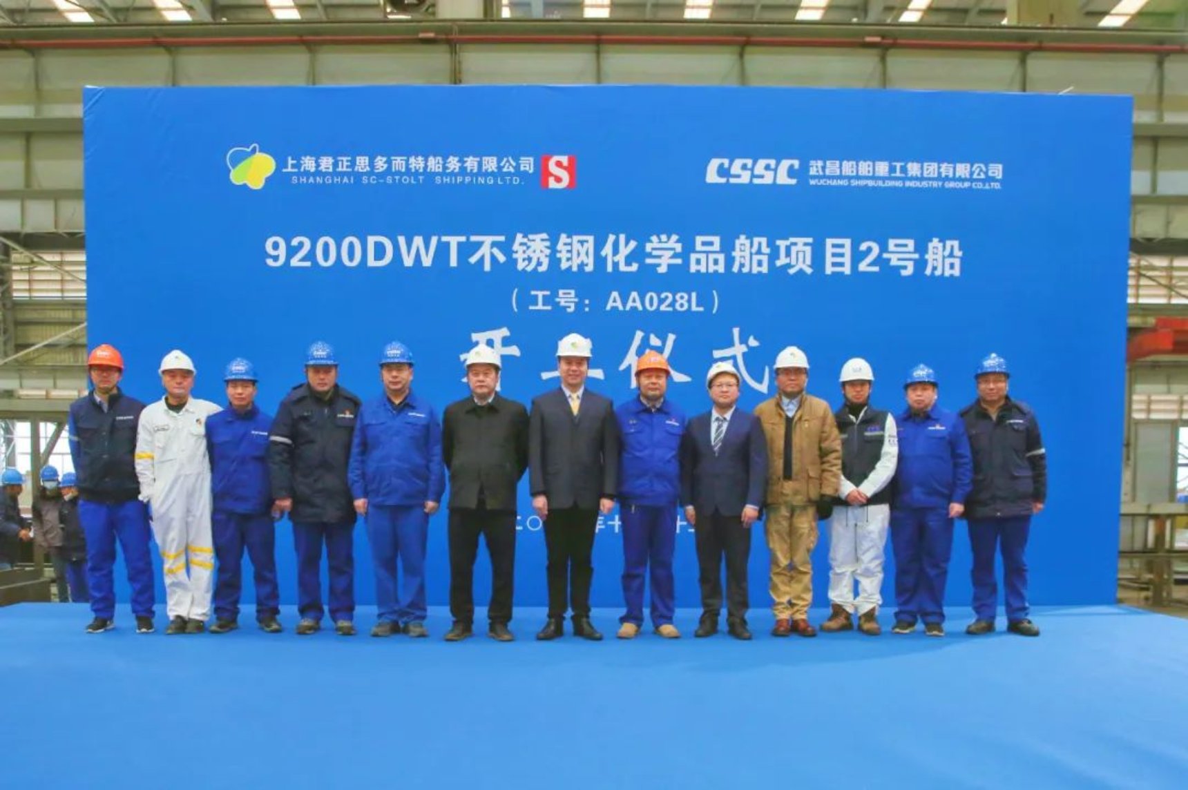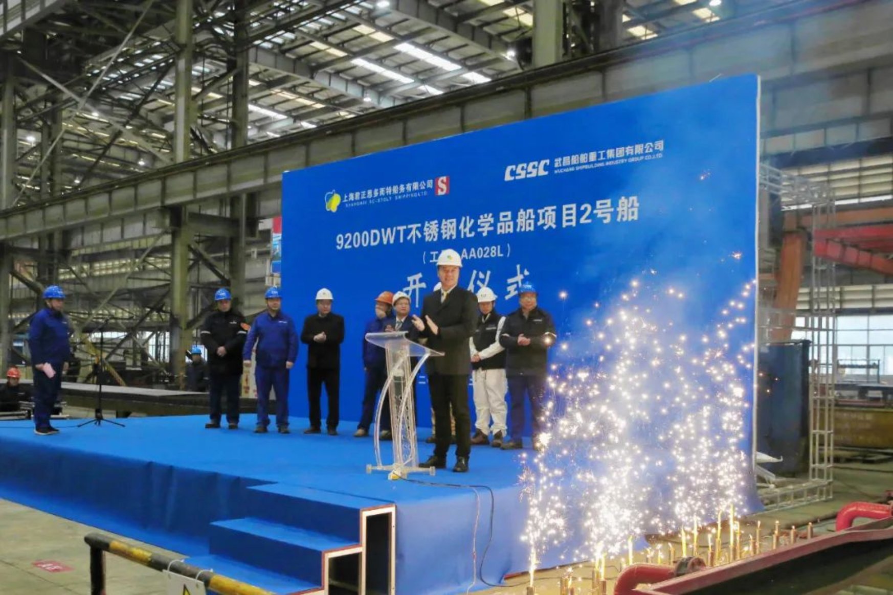 12月15日10時18分,由中國船舶集團武昌造船為上海君正思多而特船務(wù)有限公司建造的9200DWT不銹鋼化學(xué)品船2號船正式開工!