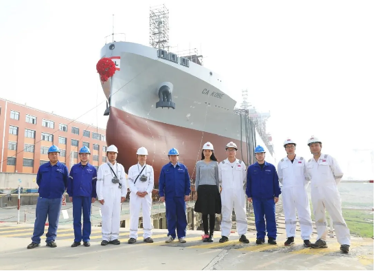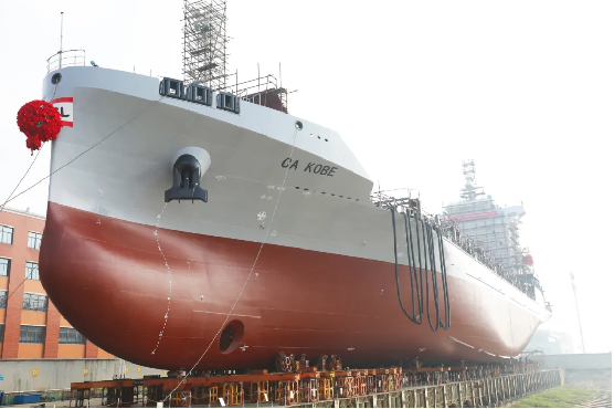 4月3日,由中國船舶集團武昌造船建造的1100TEU集裝箱船4號船 順利下水!標(biāo)志著武昌造船為CA SHIPPING建造的1100TEU集裝箱船均完成船臺建造工作!該型船1號船已順利交付,2號船正在海試階段,3號船正在系泊試驗階段。