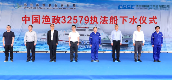 4月16日9點58分,由中國船舶集團武昌造船建造的 新建300噸級漁政執(zhí)法船“中國漁政32579” 順利下水!連云港市委副書記、統(tǒng)戰(zhàn)部部長盧剛,連云港市農(nóng)業(yè)農(nóng)村局副局長李寶波,連云港市海洋與漁業(yè)綜合行政執(zhí)法支隊支隊長張長春,武漢市交通運輸局港航事業(yè)發(fā)展中心檢驗組涂航,武漢船舶設(shè)計研究有限公司執(zhí)行董事黃俊,中國船級社實業(yè)有限公司武漢分公司副總經(jīng)理吳章,武昌造船黨委委員、副總經(jīng)理田軍等相關(guān)單位領(lǐng)導(dǎo)及嘉賓出席下水儀式。