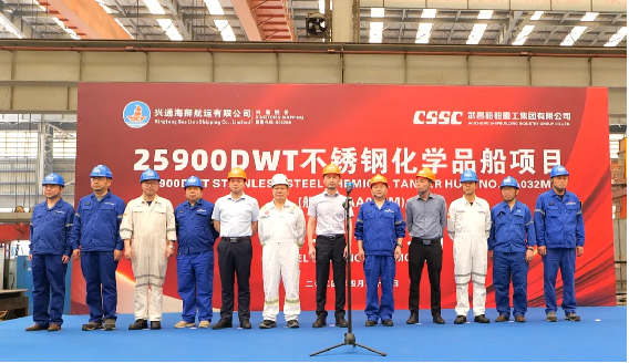 4月23日10點(diǎn)38分,由中國(guó)船舶集團(tuán)武昌造船為興通海運(yùn)股份有限公司下屬子公司興通海獅航運(yùn)有限公司建造的25900載重噸不銹鋼化學(xué)品船1號(hào)船正式開(kāi)工。興通海運(yùn)股份有限公司副總裁陳其德一行及現(xiàn)場(chǎng)監(jiān)造團(tuán)隊(duì),美國(guó)船級(jí)社,武昌造船黨委委員、副總經(jīng)理田軍及公司各部門(mén)相關(guān)負(fù)責(zé)人參加開(kāi)工儀式。
