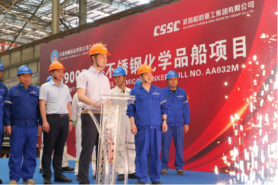 開(kāi)工儀式上,田軍代表公司對(duì)蒞臨活動(dòng)現(xiàn)場(chǎng)的來(lái)賓表示熱烈歡迎并致辭。他表示,興通海運(yùn)是中國(guó)化學(xué)品運(yùn)輸行業(yè)領(lǐng)先的船東,主要從事國(guó)際、國(guó)內(nèi)沿海散裝液體危險(xiǎn)貨物的水上運(yùn)輸業(yè)務(wù)。本項(xiàng)目是雙方第一次合作,武昌造船高度重視。今天的開(kāi)工標(biāo)志著項(xiàng)目建設(shè)全面鋪開(kāi),武昌造船將充分總結(jié)已交付化學(xué)品船的設(shè)計(jì)、建造和管理經(jīng)驗(yàn),與船東、設(shè)計(jì)院、船級(jí)社等參建各方共同努力,精心組織生產(chǎn),確保項(xiàng)目高質(zhì)量按期推進(jìn)。