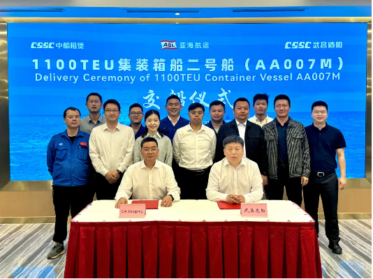 4月25日,由中國船舶集團武昌造船為CA SHIPPING建造的 1100TEU集裝箱船2號船 提前交付!該船的提前交付是武昌造船步入快車道,跑出加速度的成果體現(xiàn),展現(xiàn)了公司在設(shè)計和建造方面的綜合實力,也為武昌造船建廠90周年獻上的一份沉甸甸的賀禮!武昌造船、亞海航運、NK船級社、哥倫比亞船舶管理公司等相關(guān)單位領(lǐng)導和嘉賓共同見證交付儀式。
